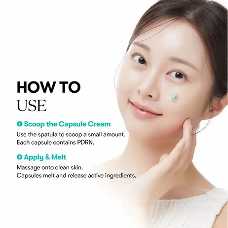 Step 1: Scoop the capsule cream. Use the spatula to scopp a small amount. Each green capsule contains Vegan PDRN.